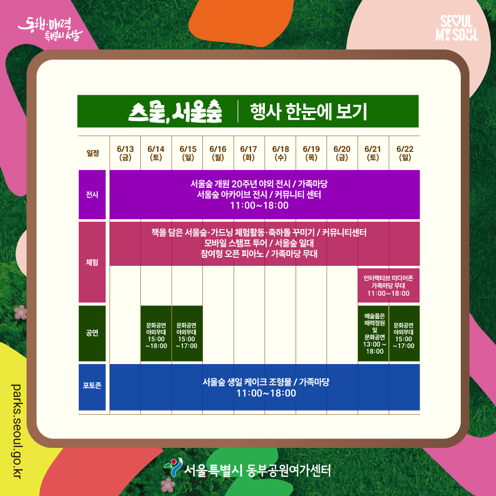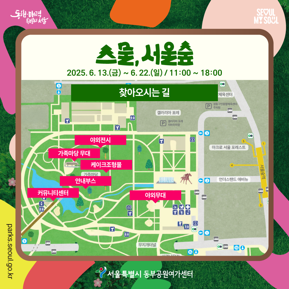 - 2025년 6월 13일(금) ~ 6월 22일(일) 서울숲 일대 진행