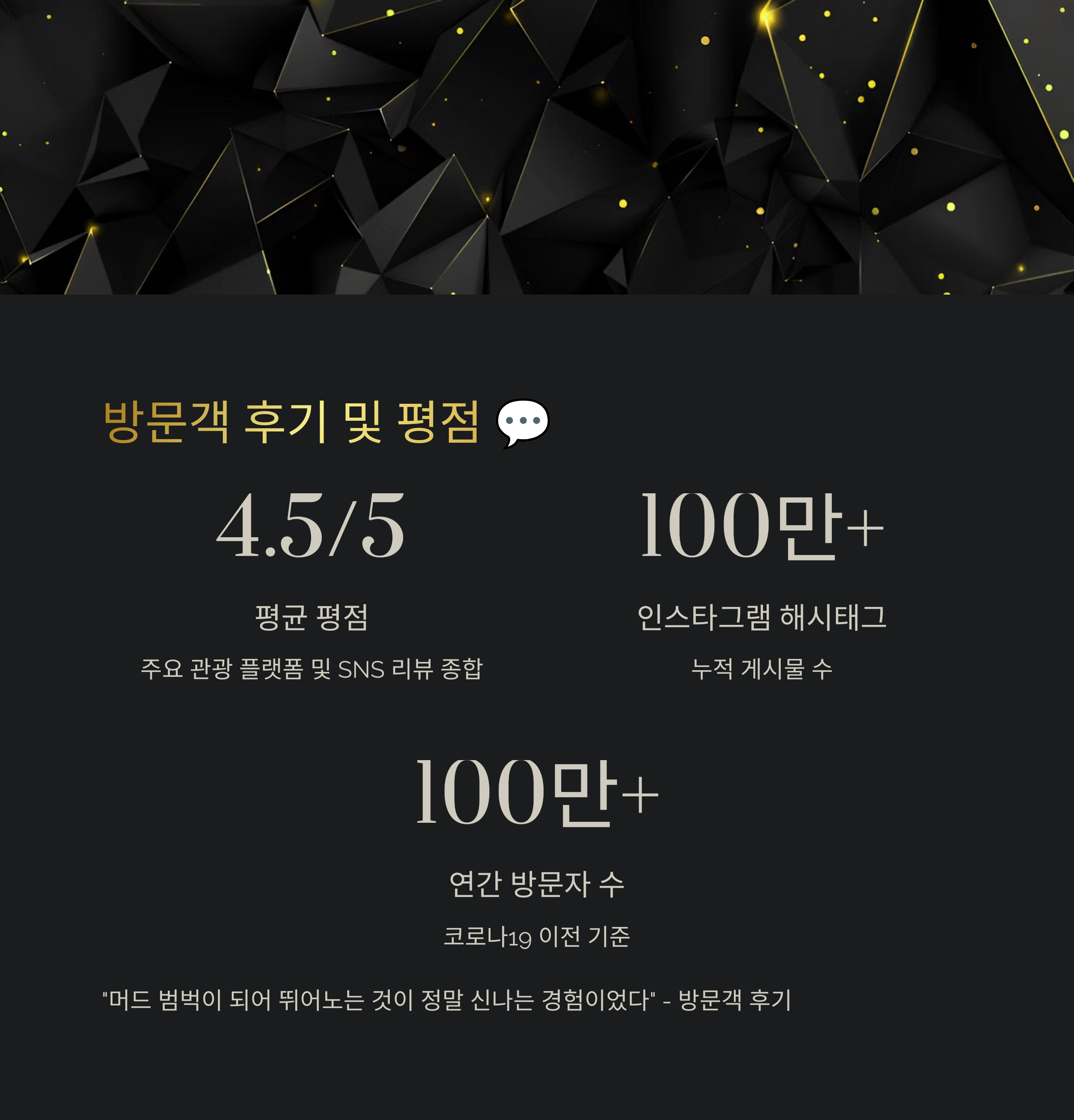 - 평균 평점: 4.5/5점 (주요 관광 플랫폼 및 SNS 리뷰 종합)