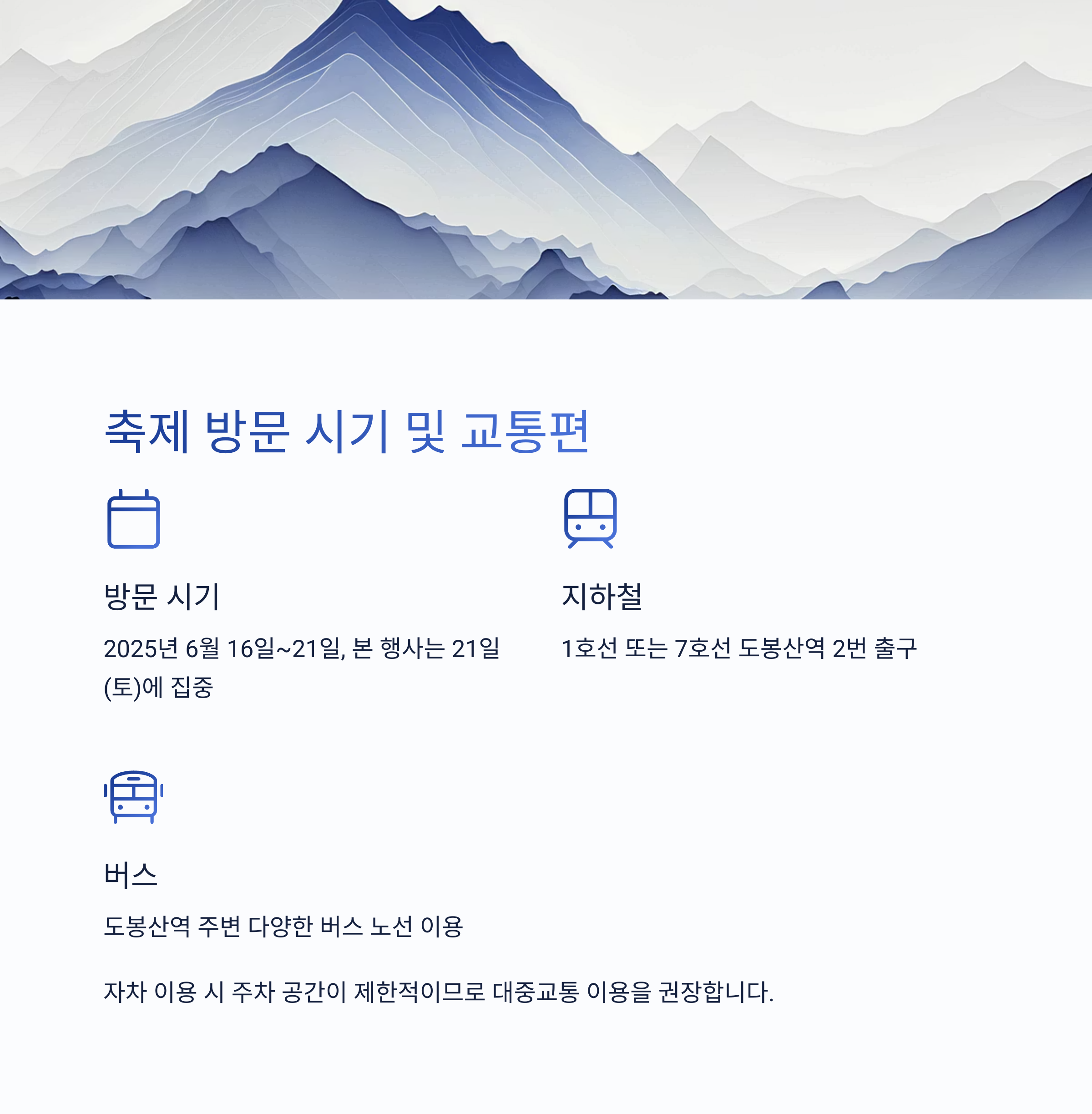 - "접근성이 좋아서 대중교통으로 편하게 다녀올 수 있었습니다. 주차 걱정 없이 축제를 즐길 수 있다는 점이 큰 장점입니다."