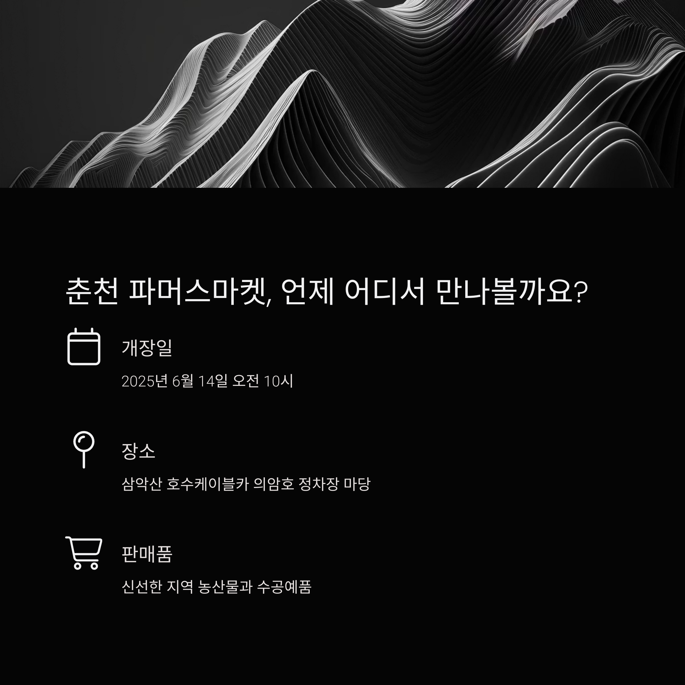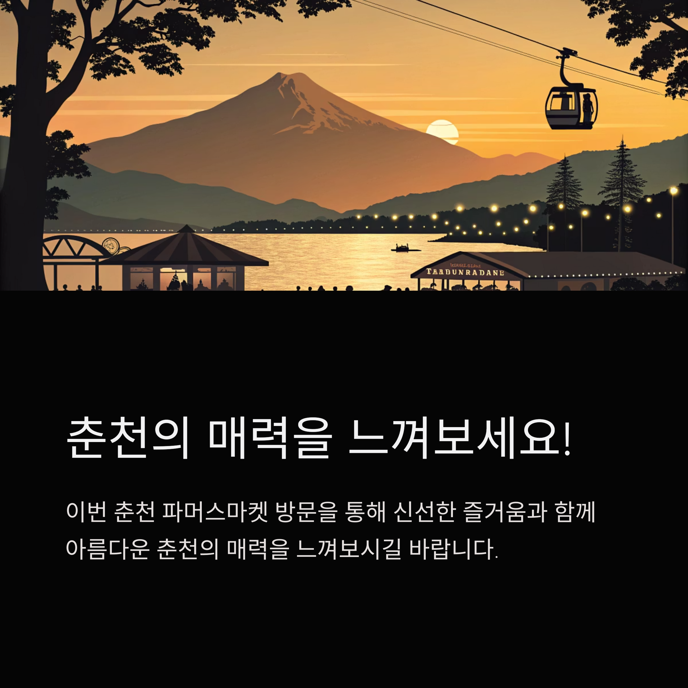 이번 춘천 파머스마켓 방문을 통해 신선한 즐거움과 함께 아름다운 춘천의 매력을 느껴보시길 바랍니다!