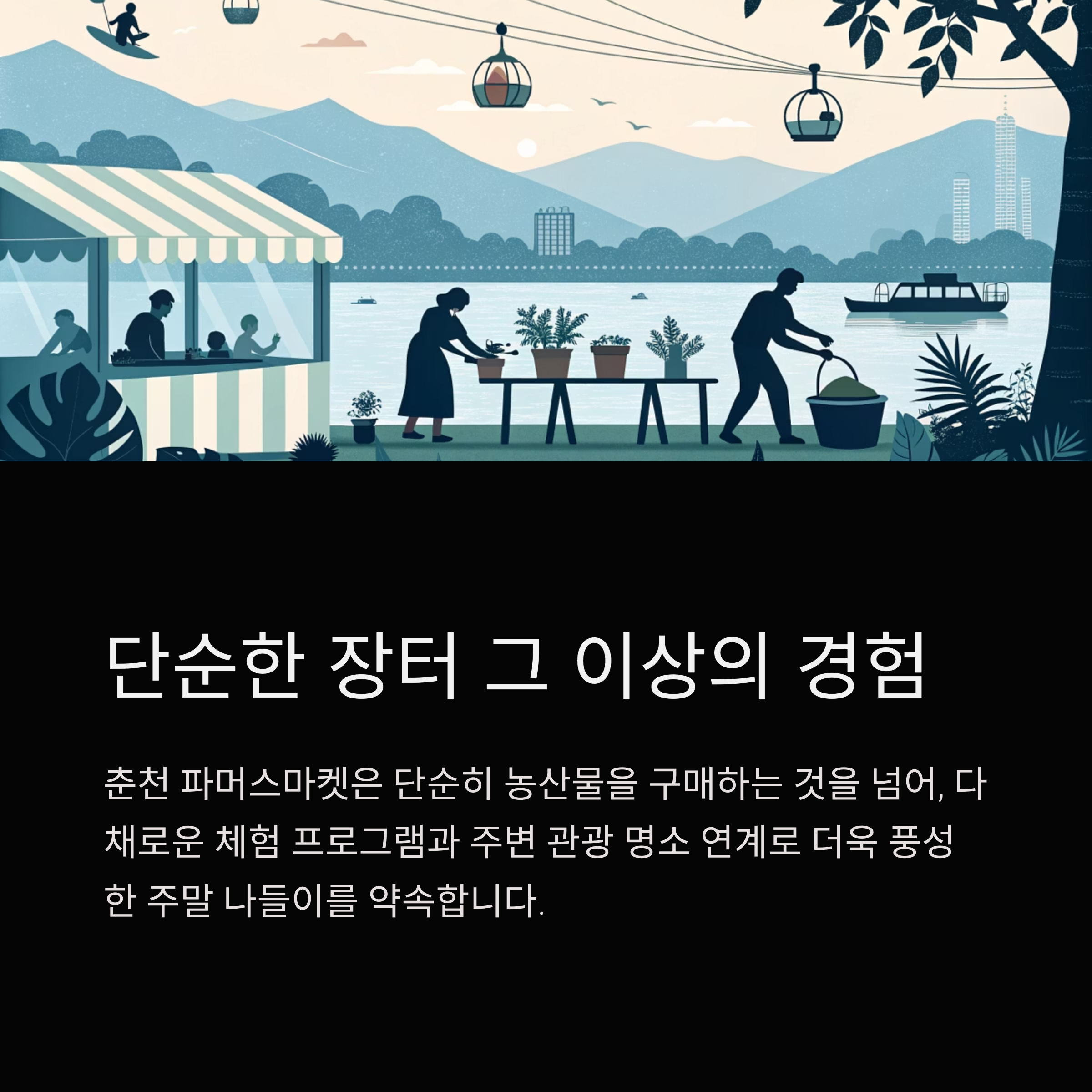 춘천 파머스마켓은 단순히 농산물을 구매하는 것을 넘어, 다채로운 체험 프로그램과 주변 관광 명소 연계로 더욱 풍성한 주말 나들이를 약속합니다.