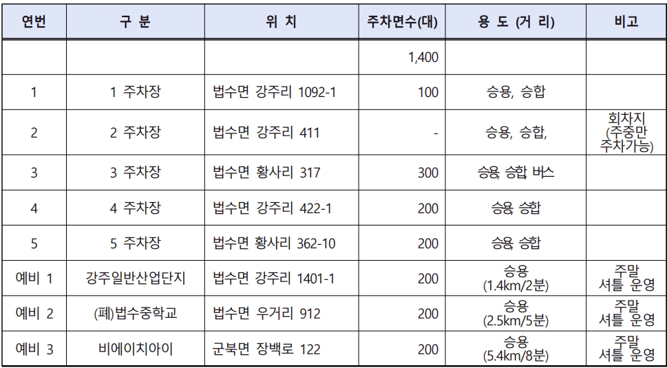 - 교통: 자차 이용 시 주차 가능, 대중교통은 버스 노선 확인 필수